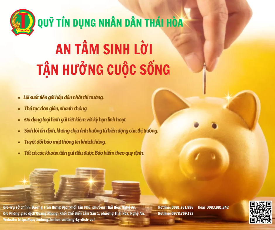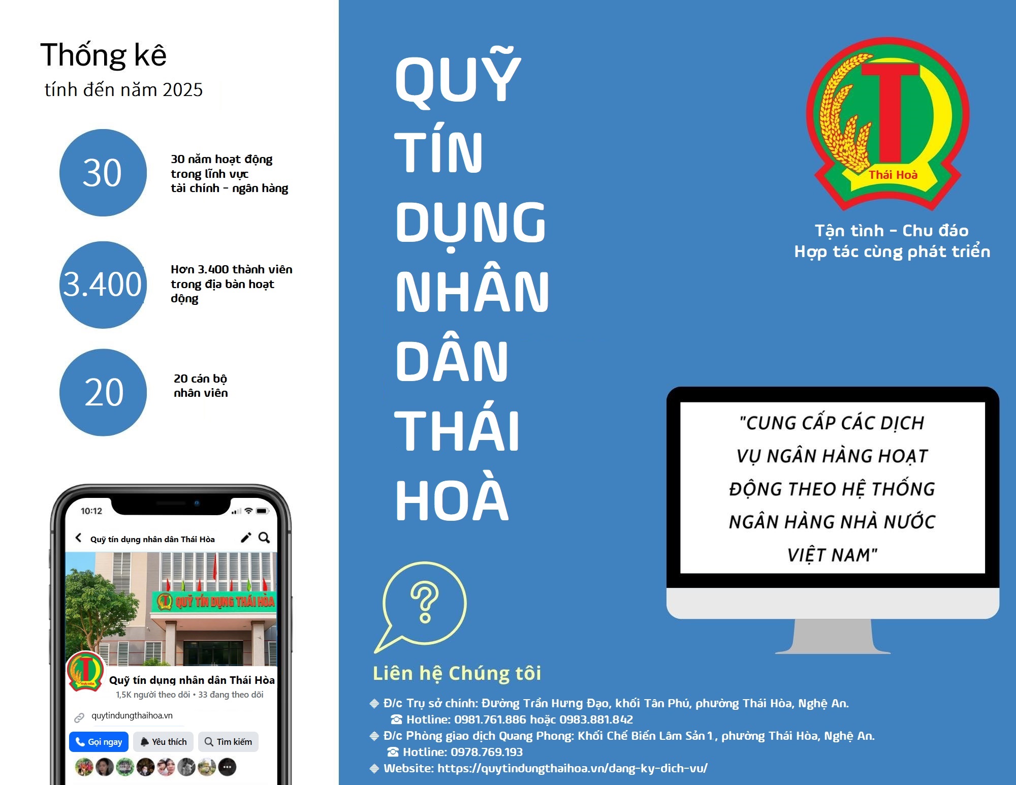 Quỹ Tín Dụng Nhân Dân Thái Hòa quyết tâm xây dựng hình ảnh một tổ chức tài chính vững mạnh, thân thiện, đáng tin cậy – nơi gửi trọn niềm tin của thành viên, khách hàng và cộng đồng.
